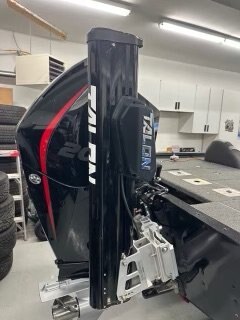 Two 8' MinnKota Talons with port and starboard brackets, controller mounted to helm.