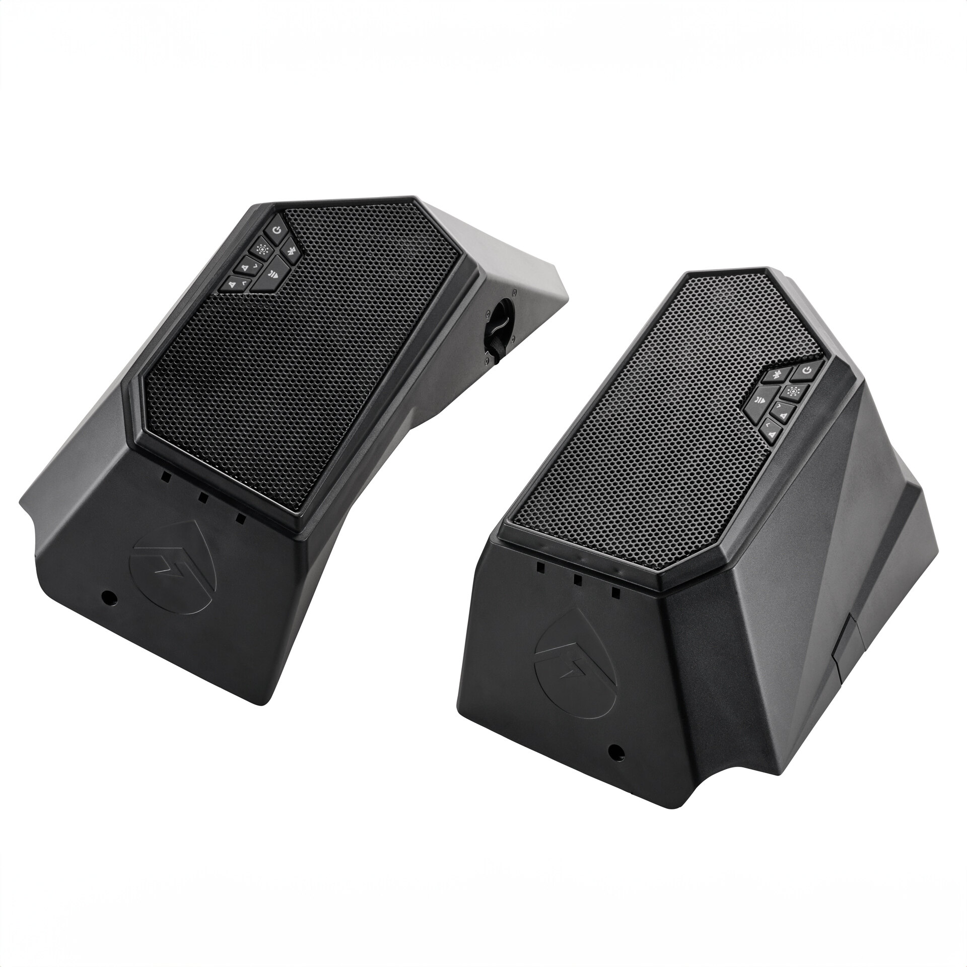 Removable, floating wireless Bluetooth® footwell speakers features a quick-release mechanism for charging and listening on the beach. Mounting brackets are permanently mounted on unit.