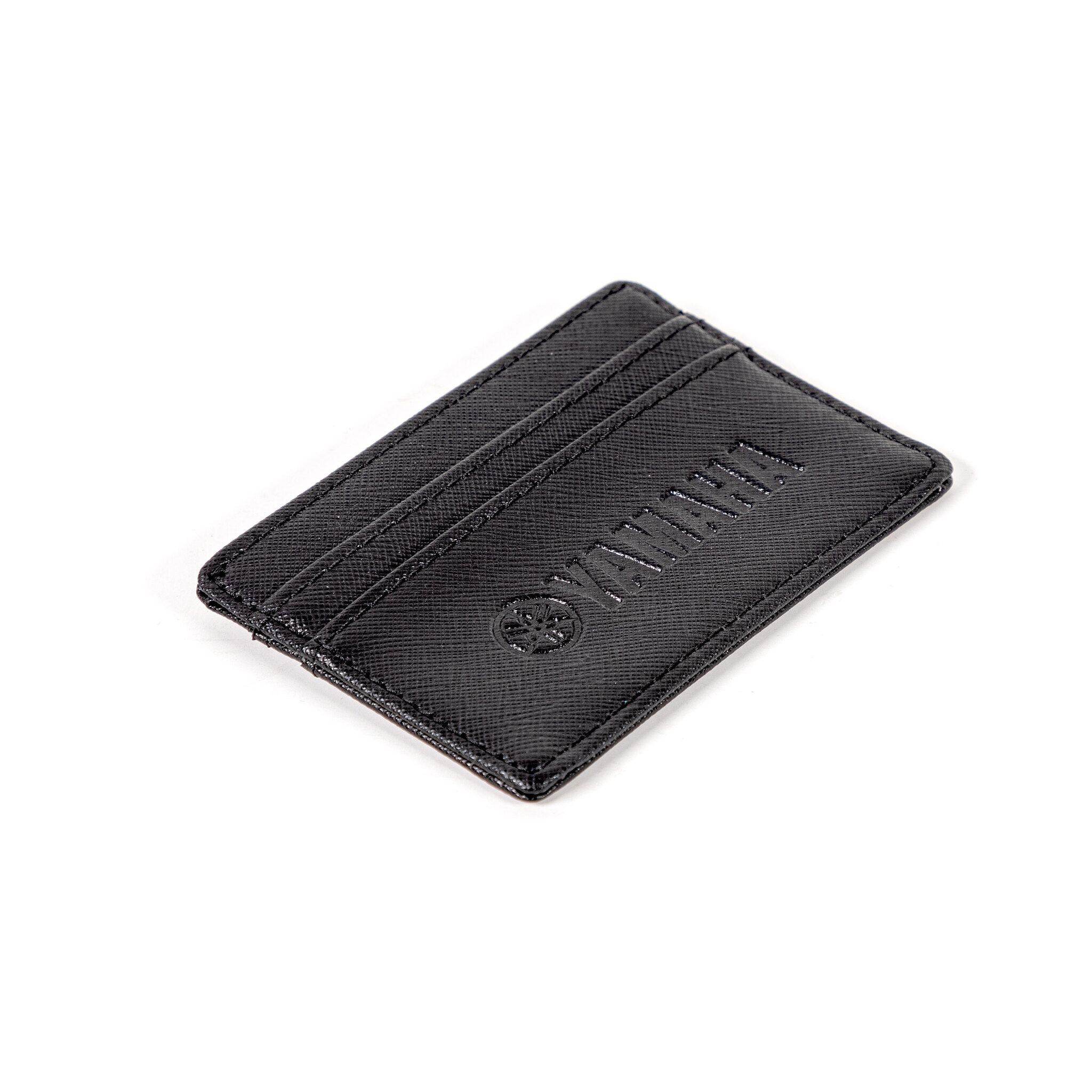 Genuine diamond-textured leather card holder. Safely stow your cards in this RFID wallet which has 5 pockets. Branded with embossed logo.