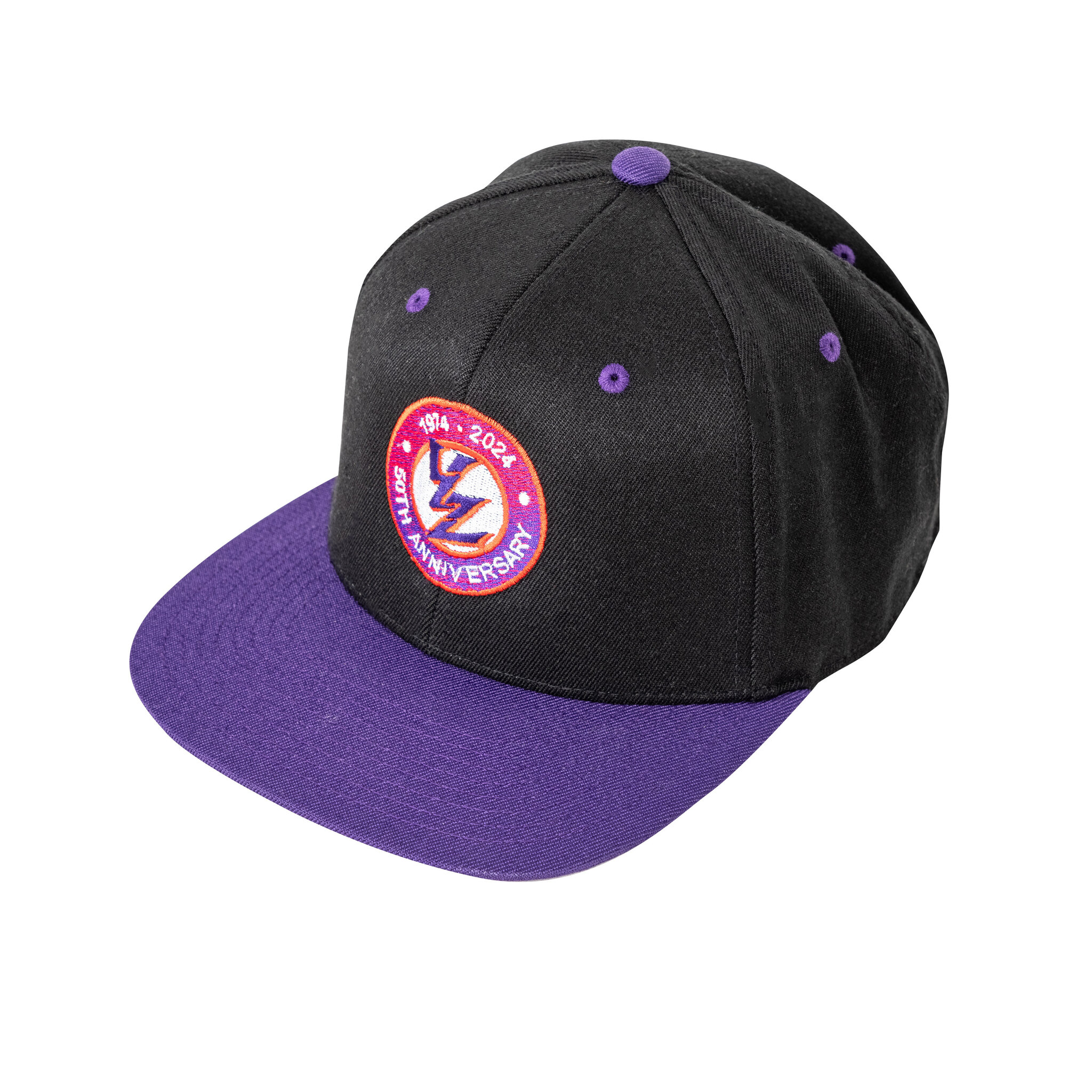 Classic structured adjustable snapback cap with premium wool blend fabric. YZ anniversary logo printed on the front.