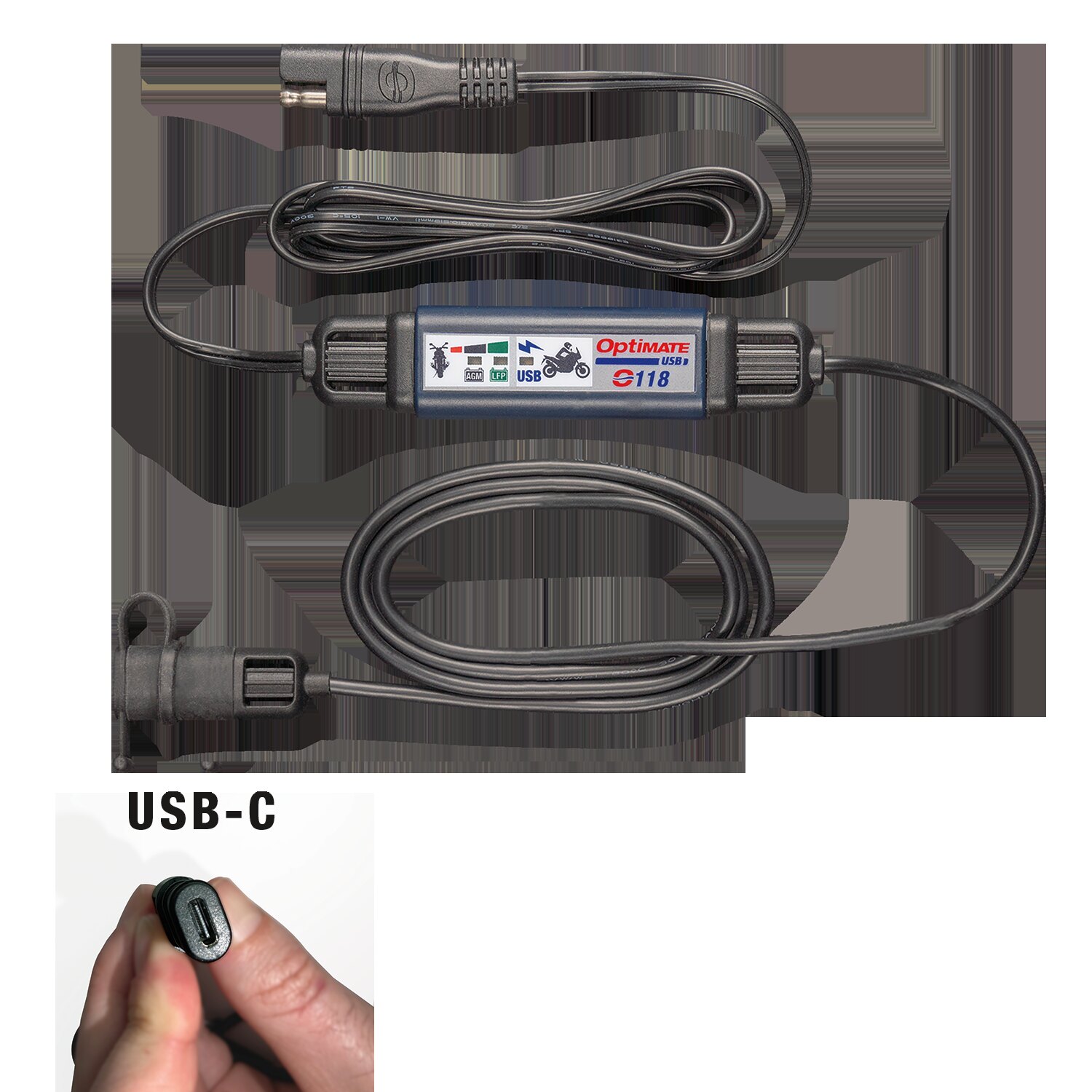 The fully sealed in-line SAE to USB-C 3300mA charger with 150cm / 60in of cable delivers safe and fast USB charging to your phone or other device that needs charging, either on the handlebar or inside your tankbag or pannier ? Charge cable routes to where USB-C charging is needed!