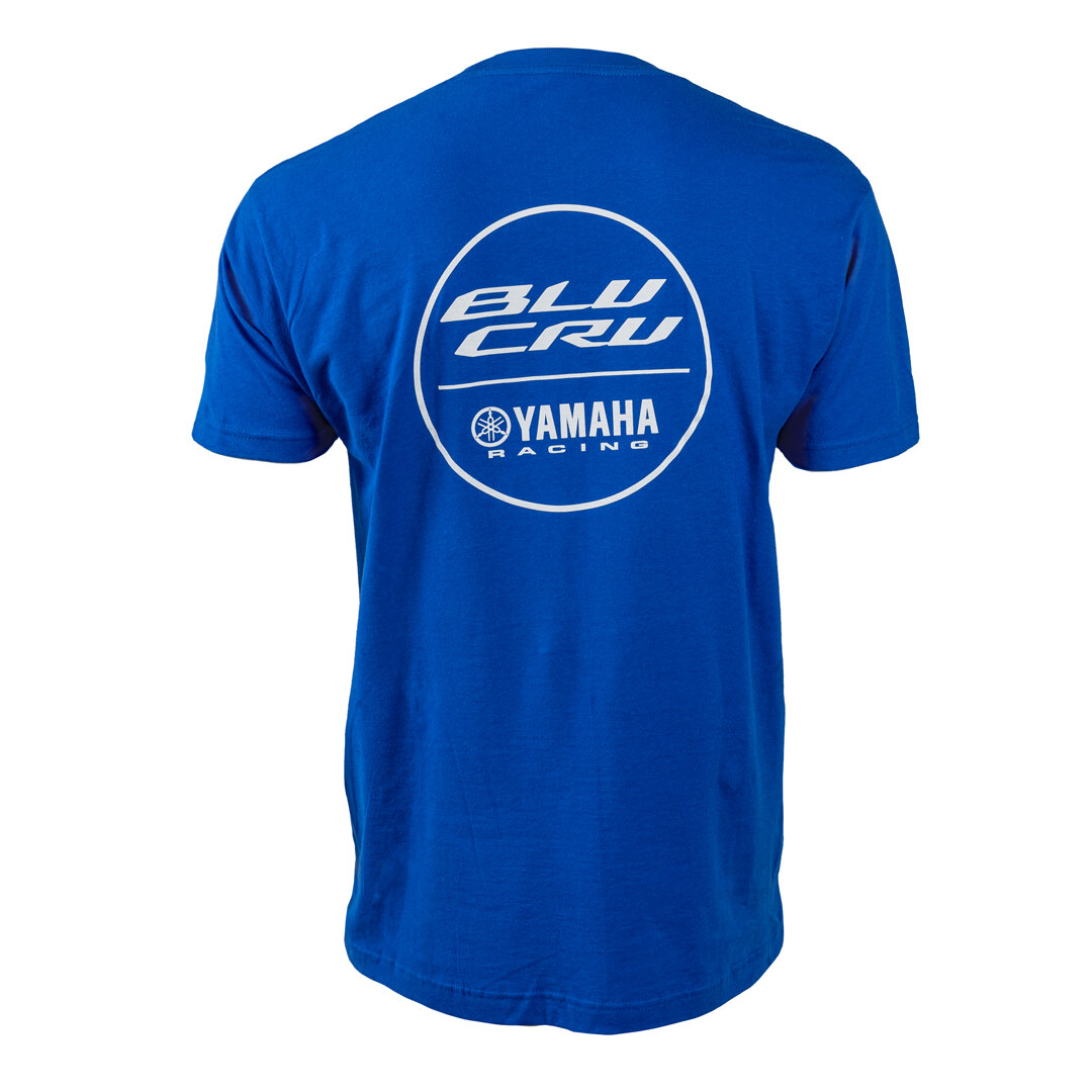 Full chest Yamaha Racing logo and BLU CRU logo on the back.