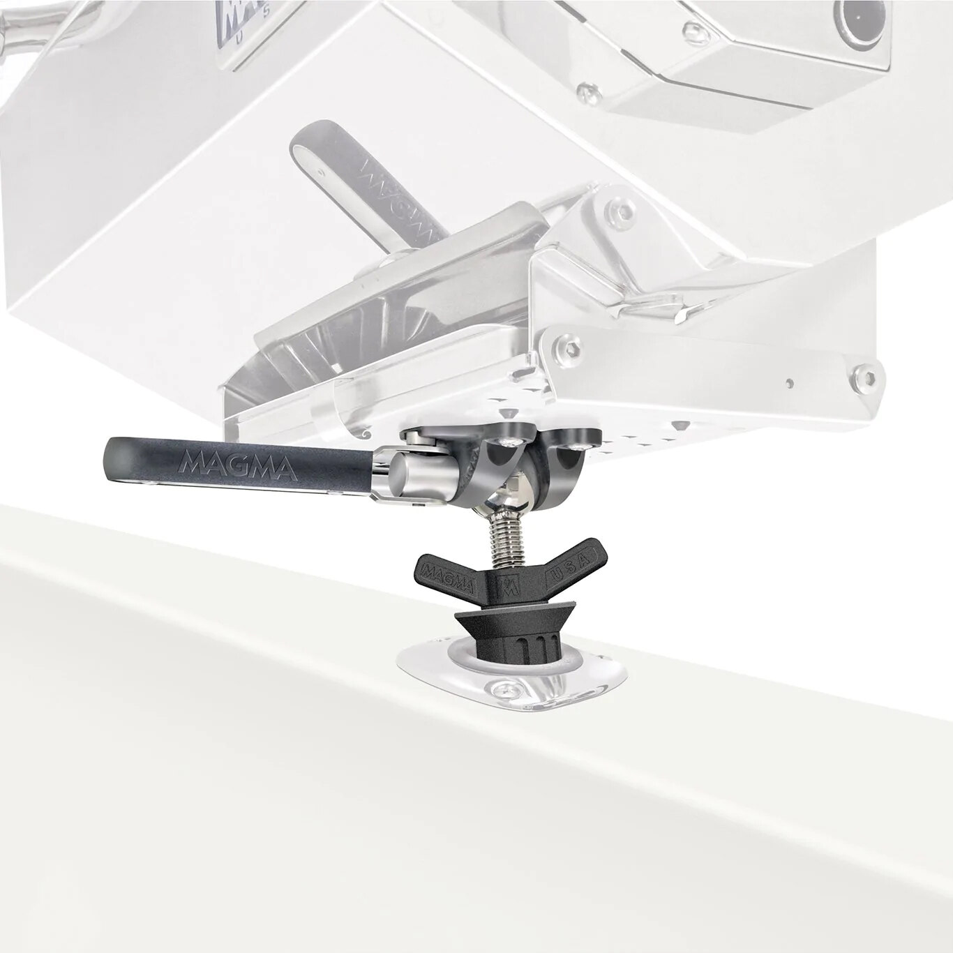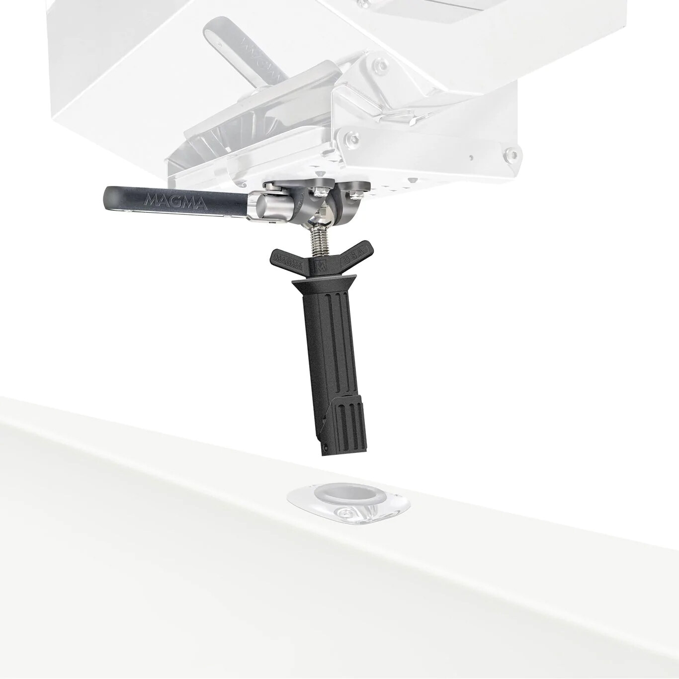 Combining the LeveLock® Adjustable Fish Rod Holder Mount, with the Pow'rGrip Adjustable Fish Rod Holder Mount, this mount adjusts and locks in place at both ends. This allows the Pow'rGrip portion of the mount to adjust to most cylinder type rod holder and lock in place, while the LeveLock® portion of the mount, adjusts and locks your Magma rectangular grill or single mount filet table.